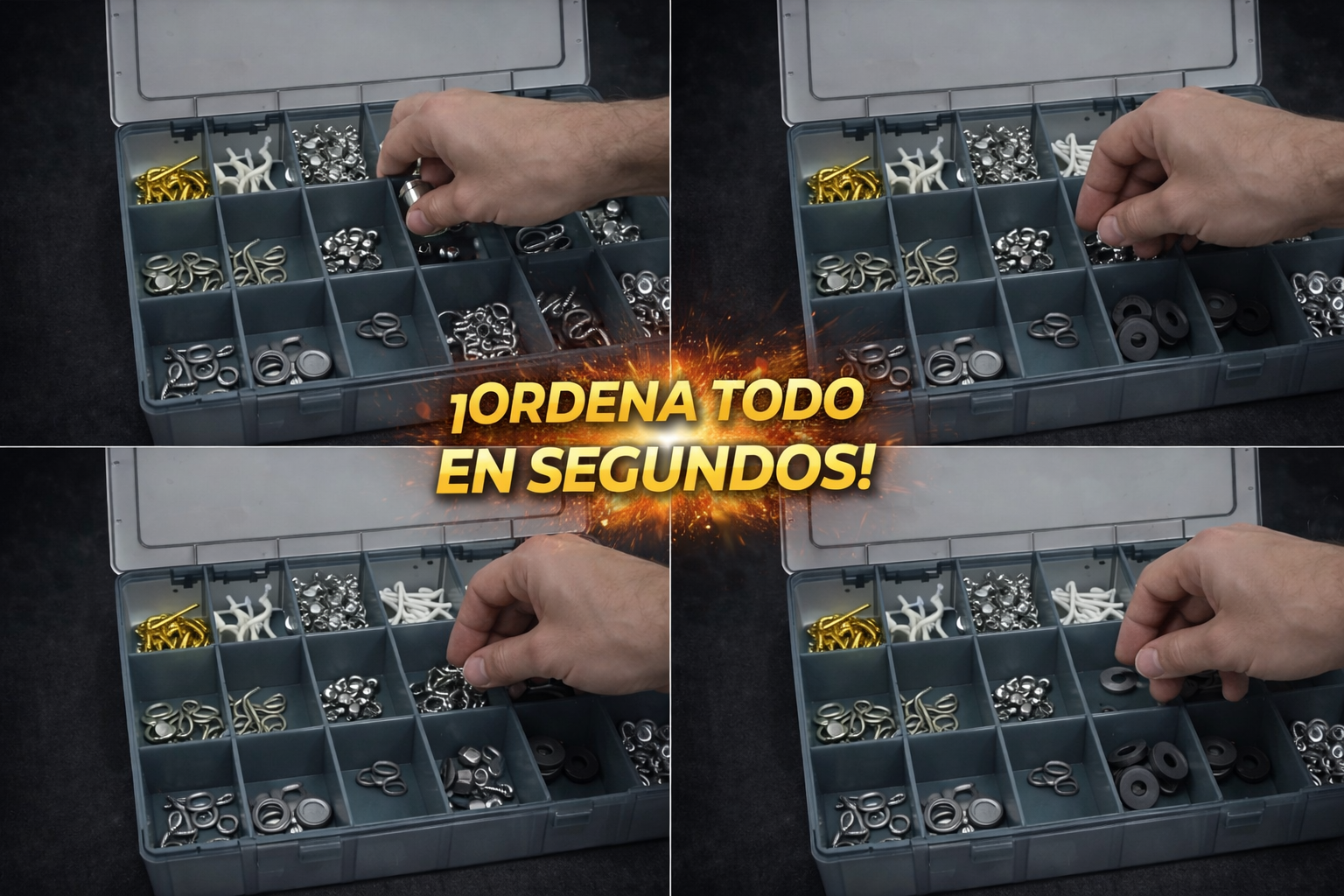 Perfecta para tornillos, tuercas, arandelas y piezas pequeñas.