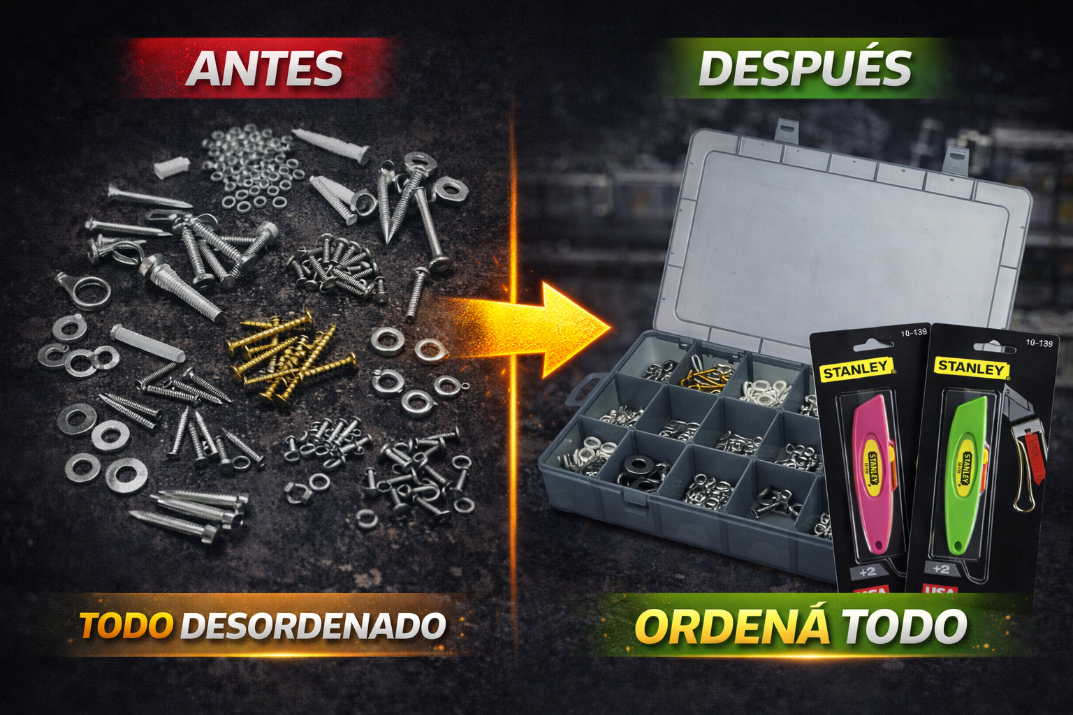 🔸 Uso: Tornillos, tuercas, clavos, piezas pequeñas