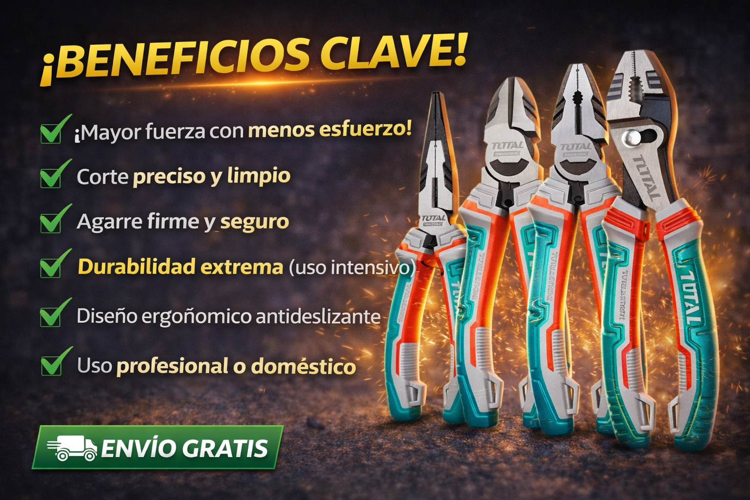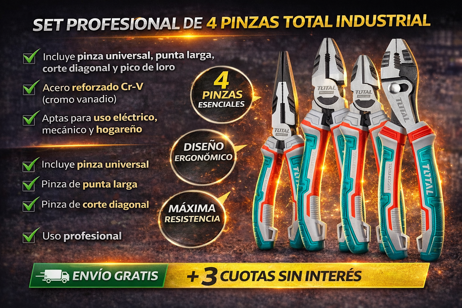 🔥 KIT PROFESIONAL DE 4 PINZAS INDUSTRIALES