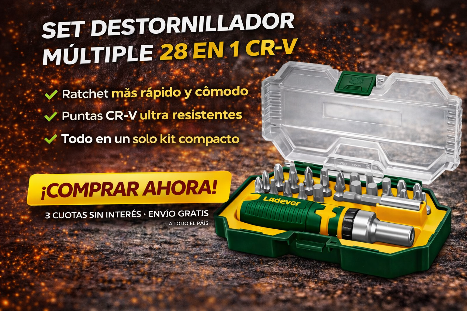 Con este set destornillador múltiple Jadever 28 en 1, tenés todo en un solo kit compacto: